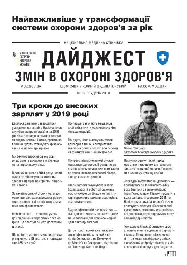 Дайджест змін в охороні здоров’я 13 Дата публікації: 03 Січня 2019 року. Опубліковано в Реформа МОЗ. « Назад Вперед »