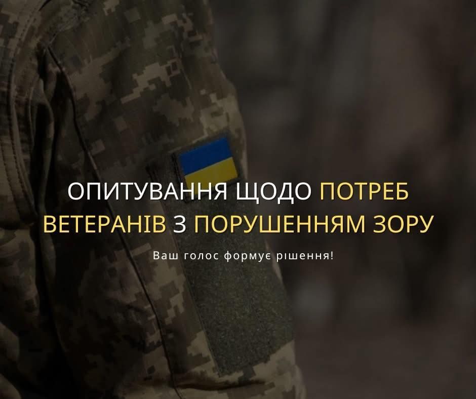 Метою цього опитування є збір інформації, необхідної для кращого розуміння потреб ветеранів і ветеранок із порушенням зору. Зібрані дані допоможуть Українському Червоному Хресту планувати та реалізовувати програми підтримки, які відповідатимуть вашим реальним потребам, у співпраці з Міністерством у справах ветеранів України.